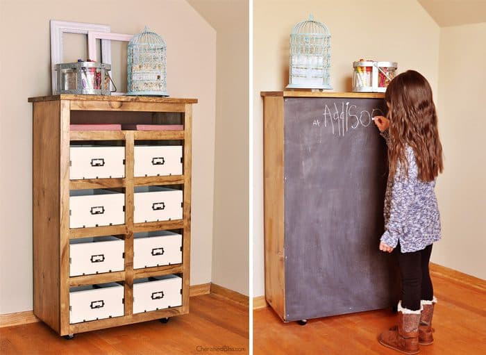 OMG, I love this! The chalkboard on the back is genius! My son is really getting into making his own comics, so our house is always covered with paper and drawing materials. This would be a great way to contain them all, if only I could get him to put everything away when he's done. Pinned!
