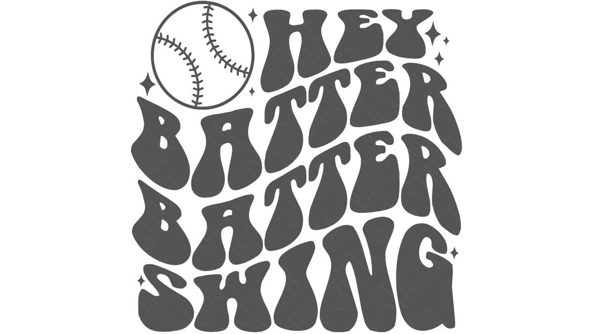 Hey Batter Batter Swing SVG Cut File is perfect for anyone who loves baseball. This baseball or softball SVG will look great on shirts, hoodies, tumblers, mugs, hats, totes, home decor, and more!