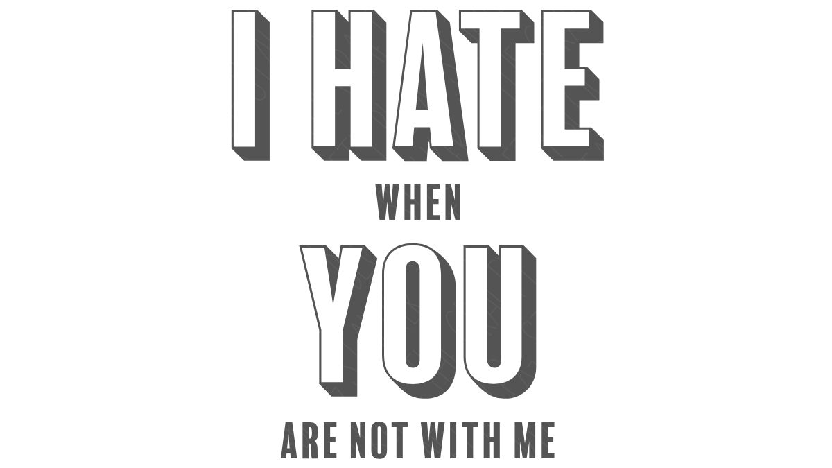 I Hate When You Aren't With Me SVG Cut File is a fun design that initially reads "I Hate You," but upon a closer look, is a heartfelt message. This funny SVG will look great on shirts, hoodies, tumblers, mugs, hats, totes, home decor, and more!