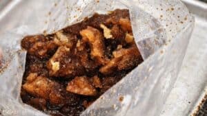- Pour it into a gallon size freezer bag and remove as much air as possible.